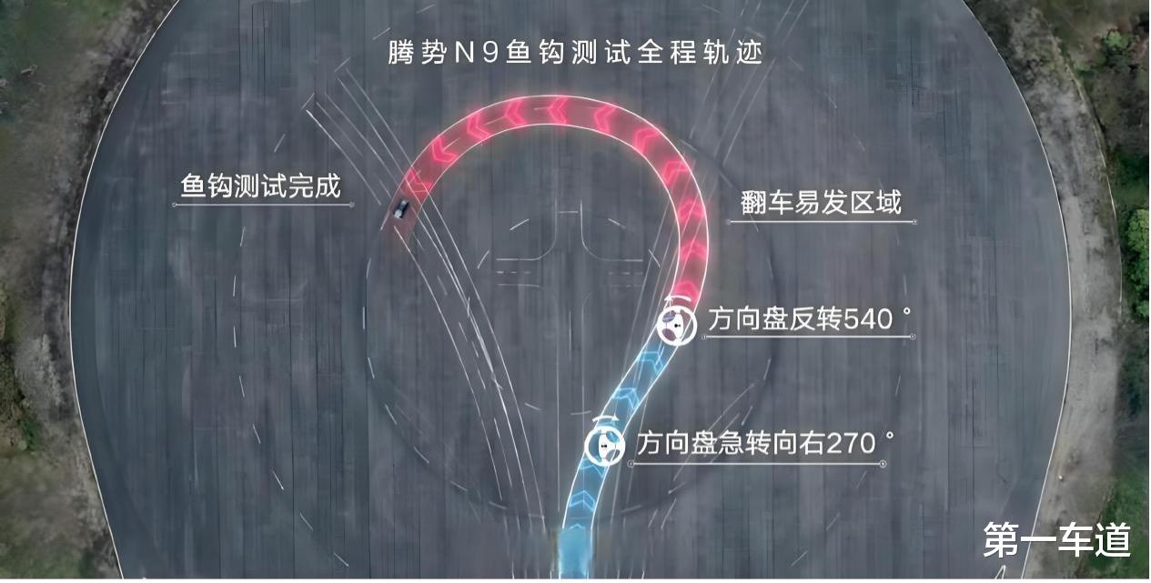 “鱼钩测试”因其测试轨迹酷似鱼钩而得名,长久以来被誉为车辆防侧翻能力的“终极大考”。其模拟的是现实中最危险的高速避让场景:高速行驶时,为躲避前方突然出现的障碍物,因为离得太近来不及刹车,驾驶员只能向右猛打方向。在巨大的离心力作用下,高重心的大型SUV极易失控、侧翻——这是牛顿定律冰冷的裁决,也是无数交通事故的惨痛根源。