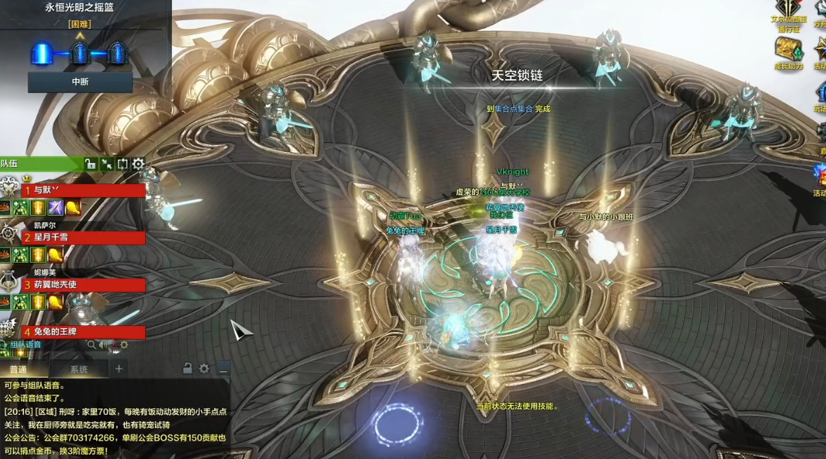 天界副本由P1,P2,P3三个部分组成,而副本整体难度在方舟中并不算高,因此开荒开始大家就表示小小天界直接拿下,陈赫娃娃还表示提前做了功课熟悉P1和P2阶段的各种机制。在开荒过程中数次预判了BOSS的动向,及时躲避,全程掌控。P1和P2的各种机制有趣但不困难,在大家简单的磨合就轻松过关。