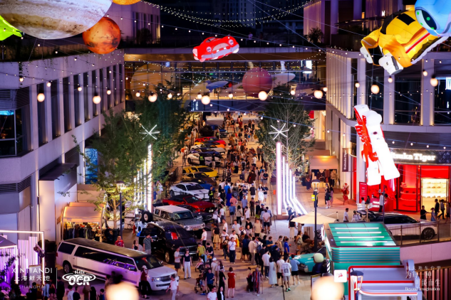 救命!新天地玩车节简直复刻了1960s好莱坞街区,晚上的霓虹灯、复古街景,林肯展区的车子完美融入场景!