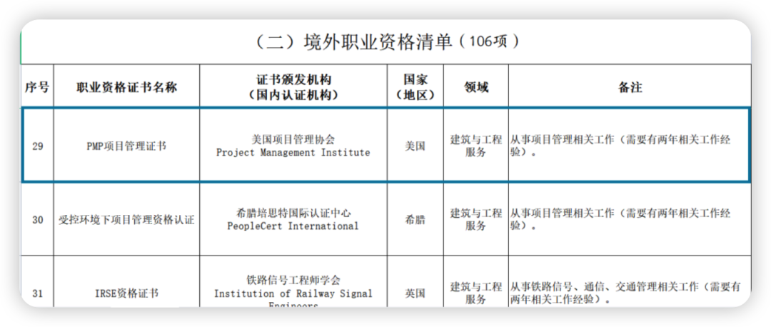 北京同样重视PMP证书的价值。PMP认证入选《北京市境外职业资格认可目录(2.0版)》,持证者可申请中级职称,还能作为申请北京工作居住证的材料之一。