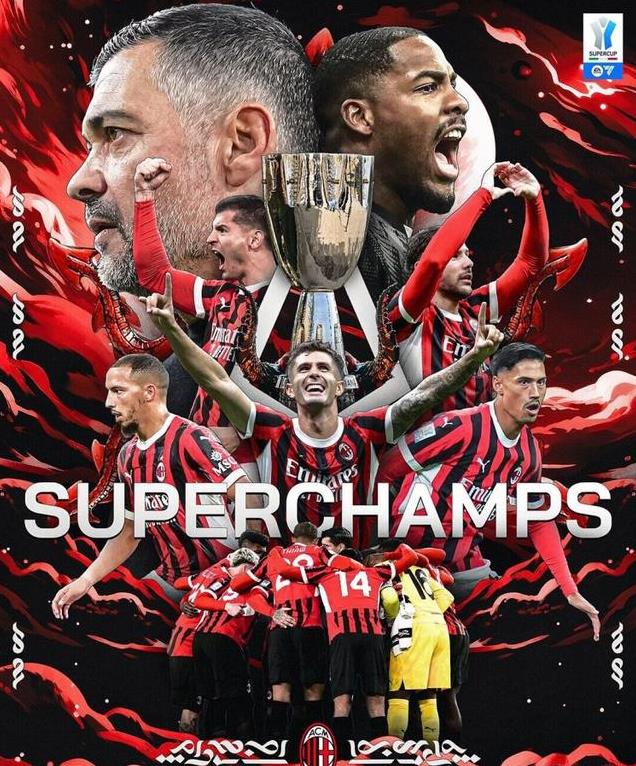 特奥的任意球破门为米兰点燃了希望,接着普利西奇也在禁区内打入一粒精彩的扳平球。最后,莱奥的精准助攻为亚伯拉罕送上了决定性的进球,米兰3-2完成了惊天逆转,捧起了意超杯。