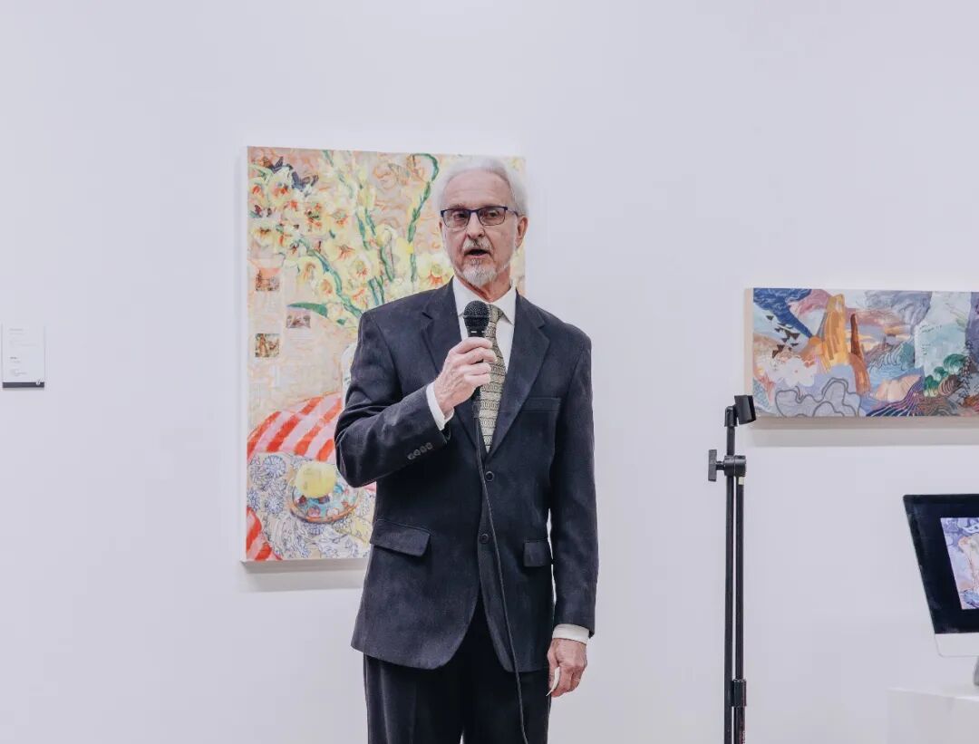 中方策展人、江苏省中国画学会会长翟优在致辞中回溯了展览脉络。他介绍,在中国驻美国大使馆的支持下,“以艺通心”系列活动于2025年5月在南京启动,此次艾比林站是文明互鉴的延续与深化,“十位艺术家的作品风格各异,但都诠释着人类对真善美的共同追求”,他同时向现场嘉宾发出邀请,欢迎大家前往江苏感受江南水乡的灵秀与华夏文化的深厚底蕴。