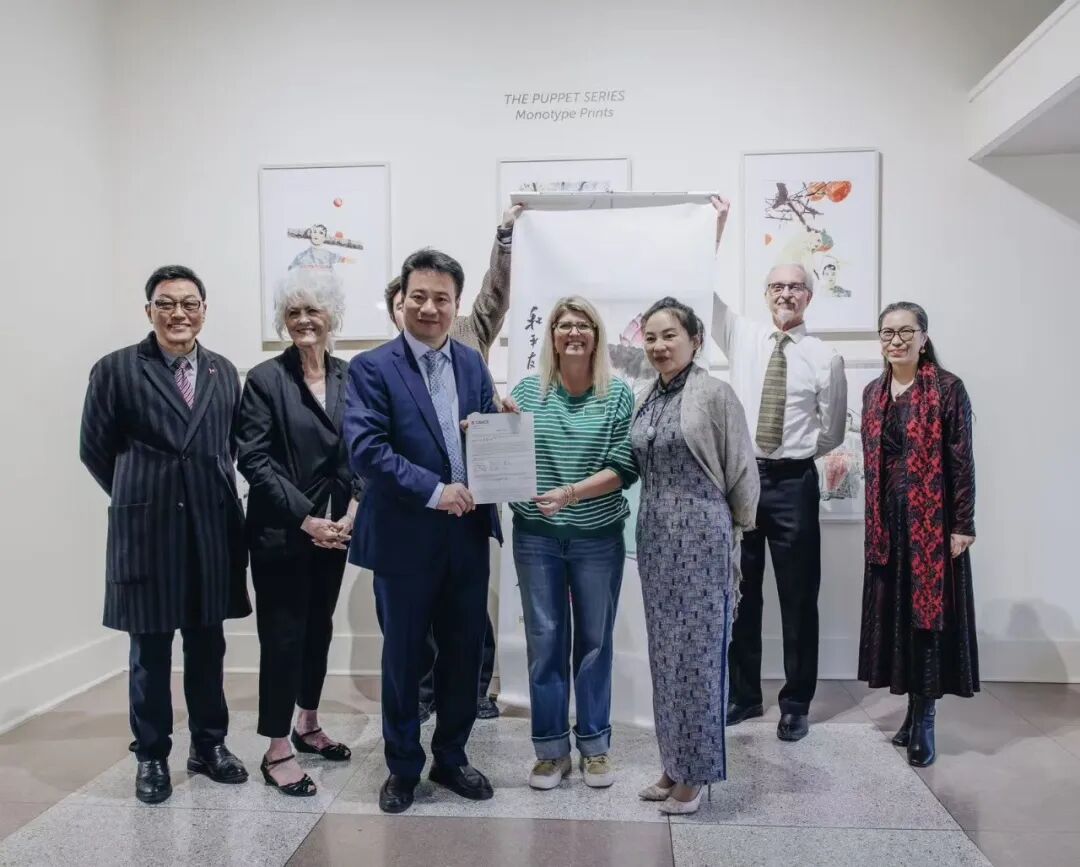 1月17日傍晚,格雷斯博物馆举行庄重的作品捐赠与收藏仪式,博物馆教育总监凯瑟琳·米切尔代表馆方,正式收藏中方艺术家翟优捐赠的作品《和平友好 事事大利》,并向其颁发收藏证书。