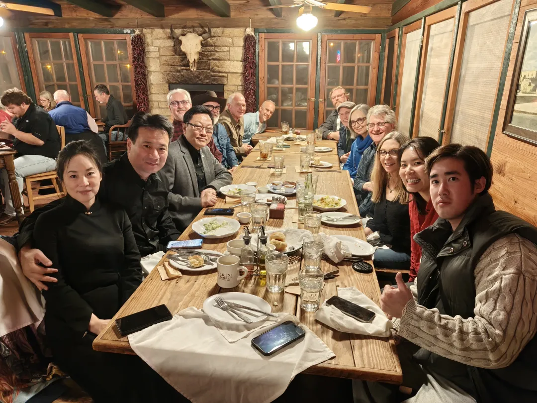 此外,美方特意安排了一场中方艺术家与大学教授们的集体午餐会,实现了一次跨艺术、高水平的对话。安排了徐涵琦的专场中国钢琴独奏与大提琴协奏音乐会,还暖心的安排了去处驰名全美的Perini’s餐厅品尝德州牛排,感受当地特色美食文化。其间,中美艺术家围绕创作理念、个人爱好、文化差异与共同追求展开深入交流。罗伯特·格林教授表示:“艺术让我们相聚,美食让我们更亲近。”翟优回应道:“文化交流不仅在于高雅艺术,更在于日常烟火气。”