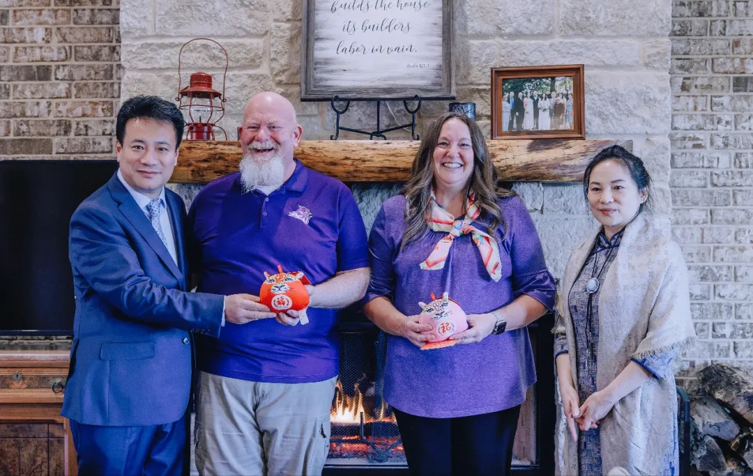 更令人动容的是,美方友人将中方艺术家视作家人,邀请其走进家庭。Deaton教授提前数日筹备家宴,烤火鸡、玉米饼等美式传统美食招待中方艺术家,取暖壁炉前,宾主围坐畅谈艺术与风土人情。Jody Jones教授的家同样温馨,碰杯祝福间,Jody Jones教授展示自己收藏的中国工艺品,分享多年前中国之行的美好回忆,翟优、樊蕾伉俪则送上“马上有福”“福豹平安”艺术玩偶,以中国传统吉祥意象传递真挚情谊,让现场氛围愈发温馨。