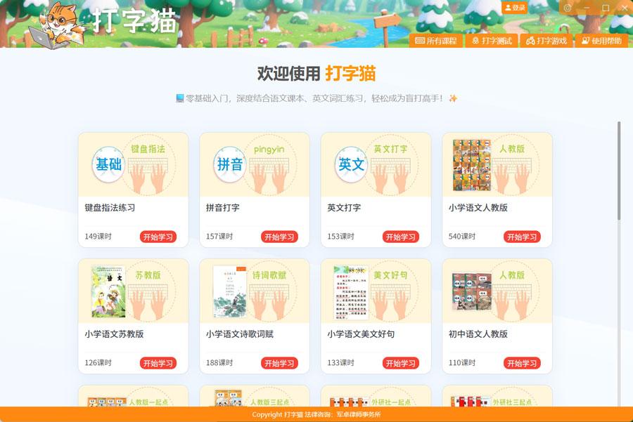 金山打字通,老江湖了。估计不少 80 后、90 后的打字启蒙就是它。它的课程像搭台阶,一级一级来:先认键盘,再练指法,再打词打句。英文、中文、五笔全安排上,分类清清楚楚。