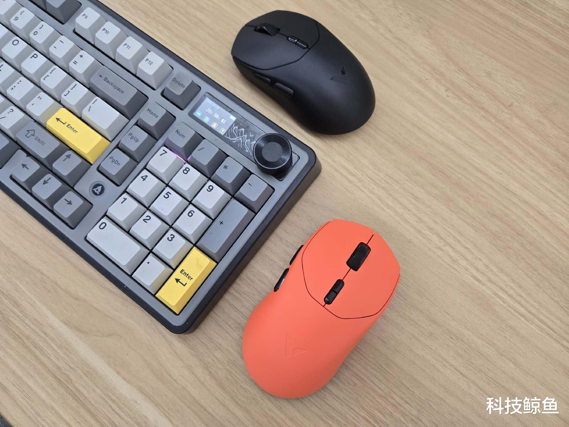 开箱环节就跳过了,直接看下鼠标,这次给到的两款配色,分别是橙色和黑色,不得不说橙色看起来还蛮亮眼的,像极了这次的iPhone17 Pro。当然除了颜色不同,在表面材质上,两款鼠标也做出了差异化设计。VT1 MAX和VT1焰影橙采用亲肤防滑涂层,触感细腻如婴儿肌肤,即便手部出汗,也能有效避免打滑,保证操作的连贯性;VT1的皎月白与星空黑版本则运用类肤磨砂工艺,不仅提升了鼠标的视觉质感,还进一步增强了握持时的摩擦力,兼顾美观与实用性。
