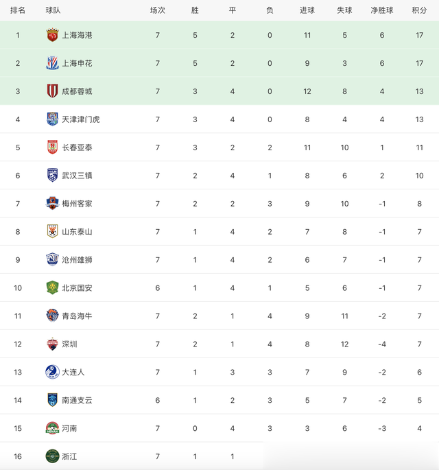 今天,中超联赛第7轮比赛激战多场,上海海港客场2-1击败浙江队,超越申花,升至积分榜首位,武磊本场梅开二度;山东泰山客场1-1战平沧州雄狮,连续4轮不胜,克雷桑扳平比分;成都蓉城主场2-2战平长春亚泰,开局7轮不败,继续排在积分榜前列。