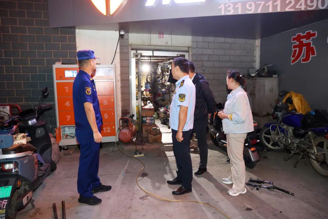 9月24日晚,掇刀区消防救援大队联合区市场监管局、住建局组建专项检查组,聚焦电动自行车销售维修门店与住宅小区两大重点场景,以“零容忍”态度开展安全隐患排查,全力守护群众夜间平安。