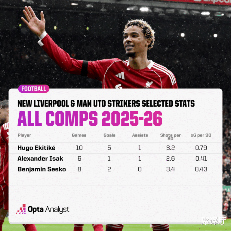 6.哪位高价前锋能灵光一现两家俱乐部在夏季都投入巨资,包括引进中锋。利物浦的埃基蒂克开局表现不错,但他们历经艰难从纽卡斯尔挖过来的伊萨克和曼联的谢什科却因为各种原因开局表现不佳。