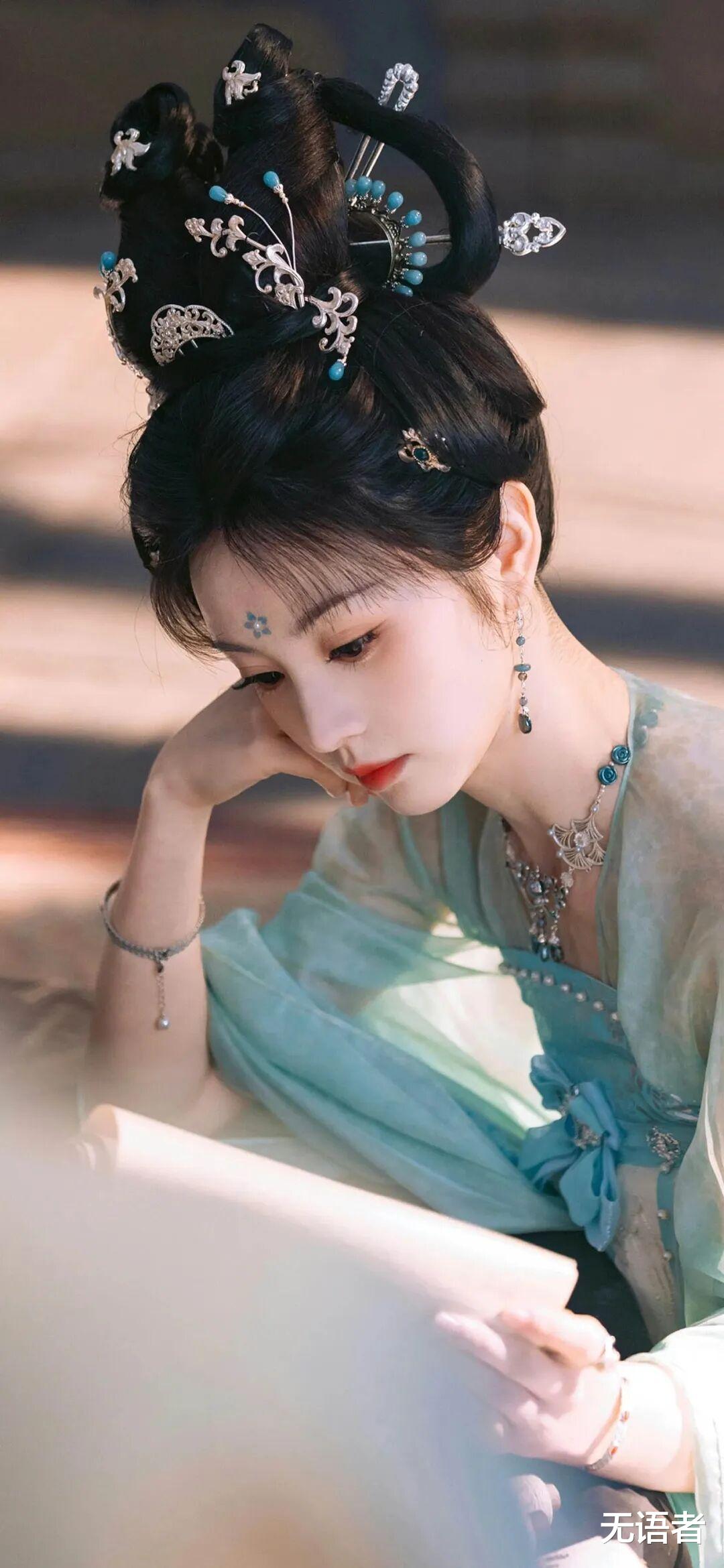 “彩鸾梳掠”,发间彩鸾形状的梳子精致华丽,紫丝长发如瀑般垂落,长及腰际。