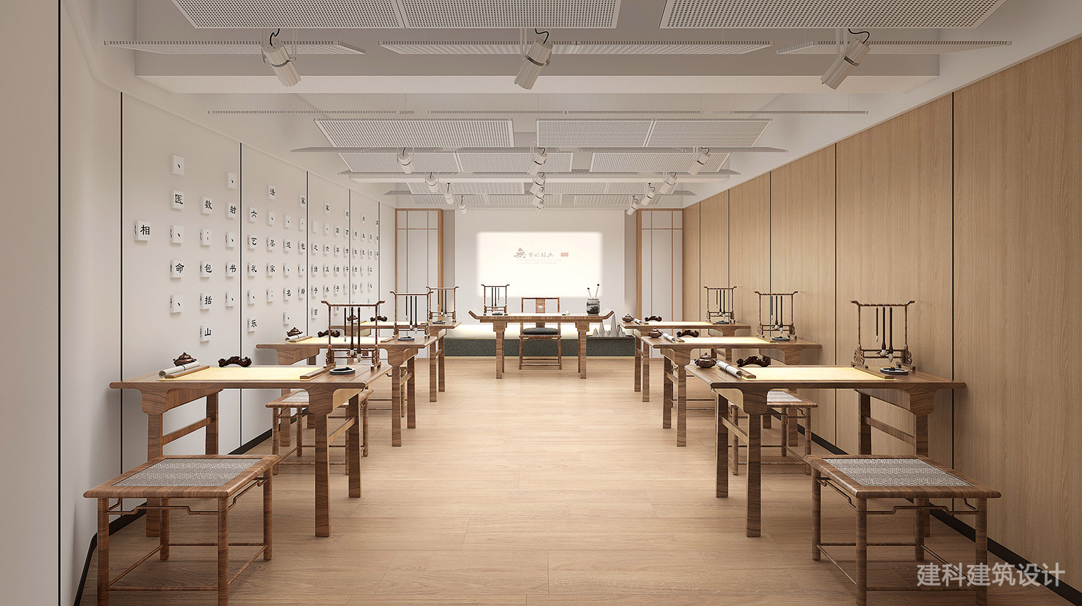 包括美术室、书法室和围棋室等的装修设计。这是一间把“艺术呼吸感”装进去的美术室,用圆弧线条柔化空间棱角,纯白基底像一张待