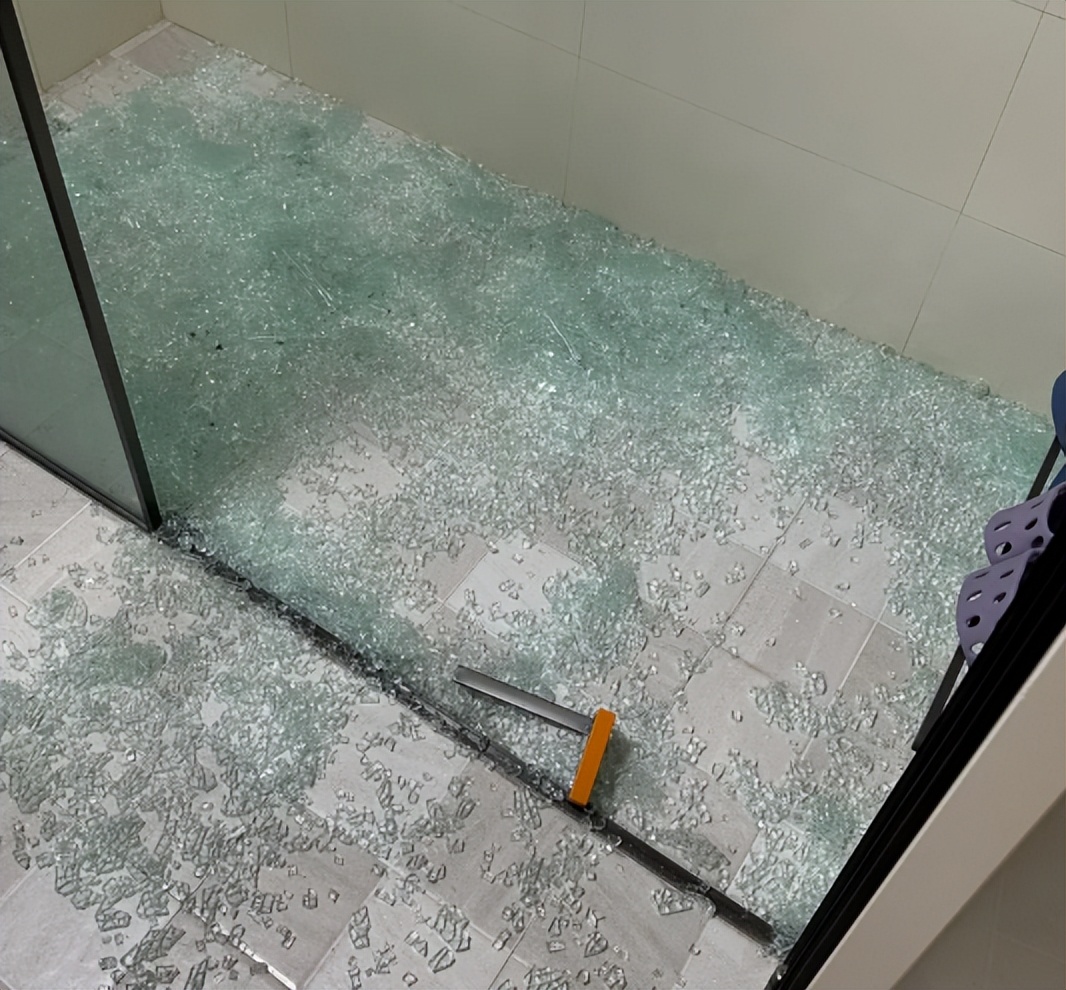 有一次冬天洗澡,可能是因为热胀冷缩,反正洗着洗着玻璃自己就炸掉了,弄得我整个手臂都是血,上医院缝了五六针。