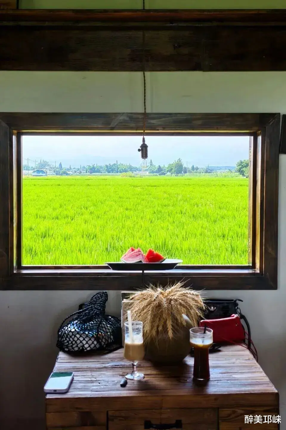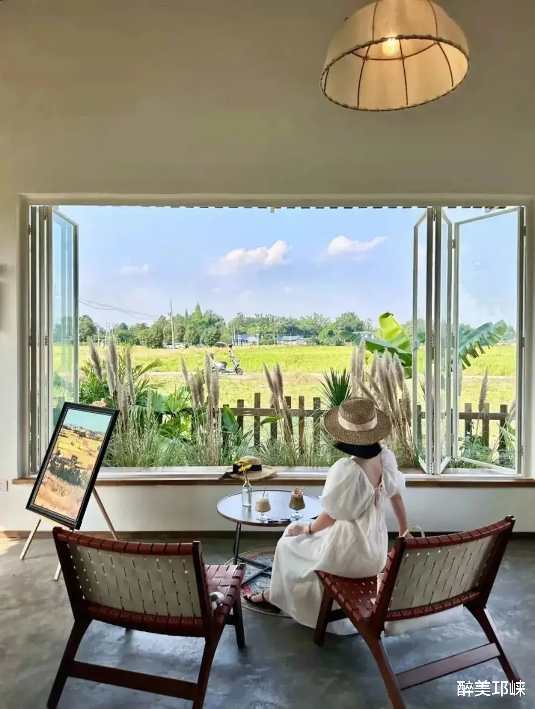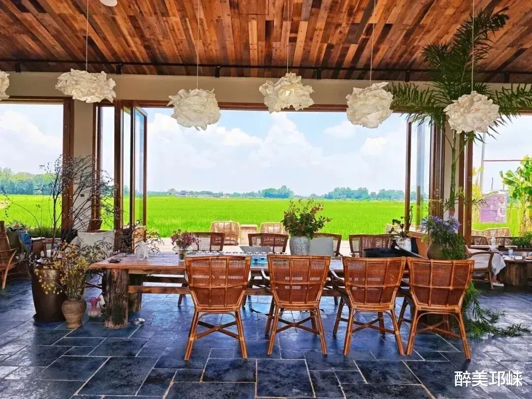 通透的落地窗外,稻穗在微风中摇曳生姿,无论选择临窗的观景座,还是露台的藤编椅,都能将田园风光尽收眼底。