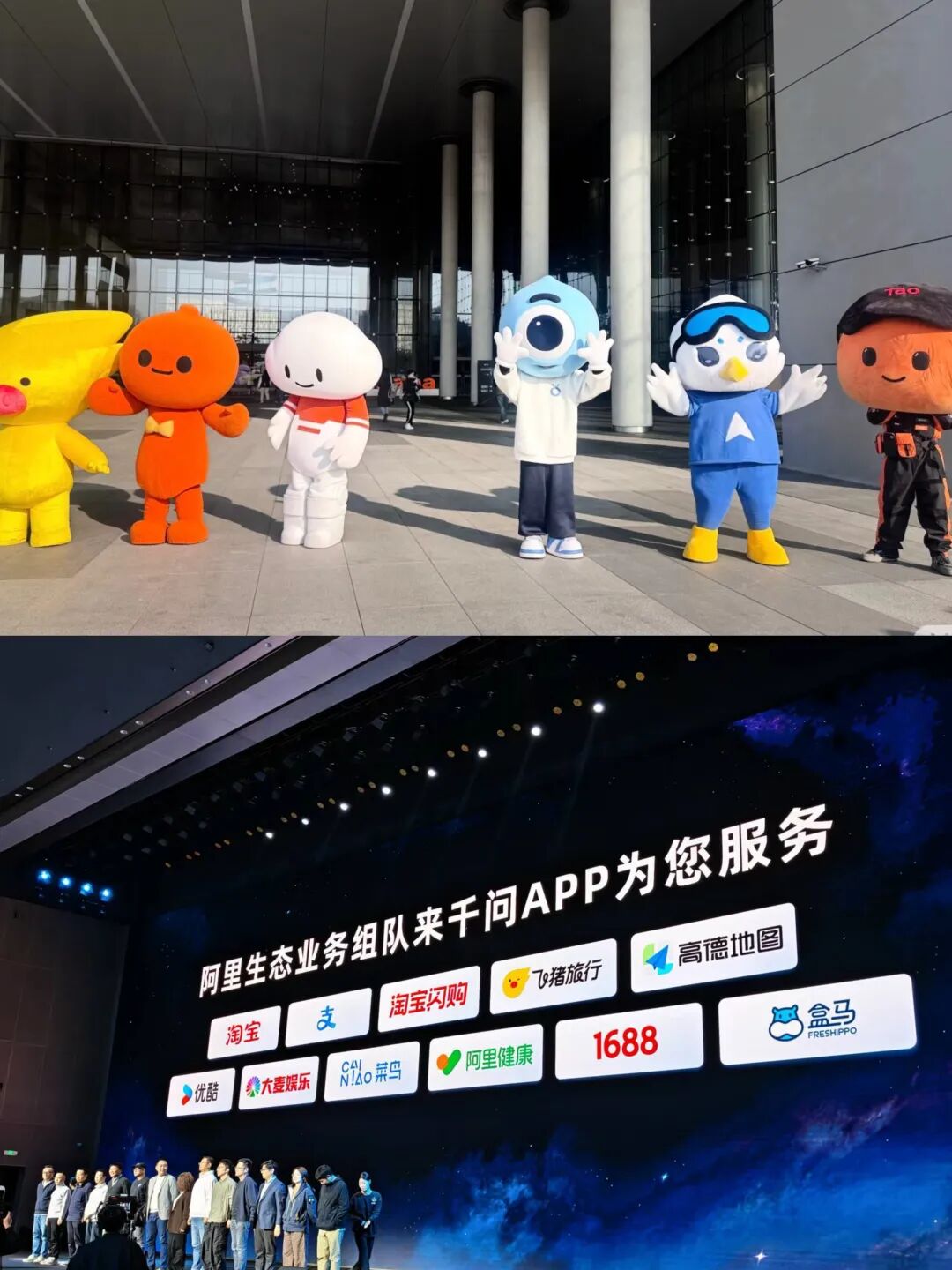 1月15日,杭州西溪园区门口站着一群玩偶在“招呼客人”。玩偶的身份指向很明确:阿里生态内的业务单元,也是当天千问发布会的主人公之一。