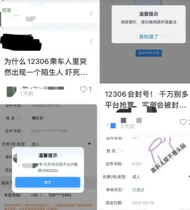 而信息泄露,这是相当可怕的,毕竟在一般人的12306账号中,添加家人信息的不在少数,要是泄露流入电诈渠道,后果不堪设想……
