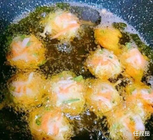 把炸锅放旺火上加油,烧到油温七成热。然后把糊糊挤成丸子,下油锅炸。当萝卜丸子炸到呈现金黄色,外焦里嫩时候,就可以出锅了。