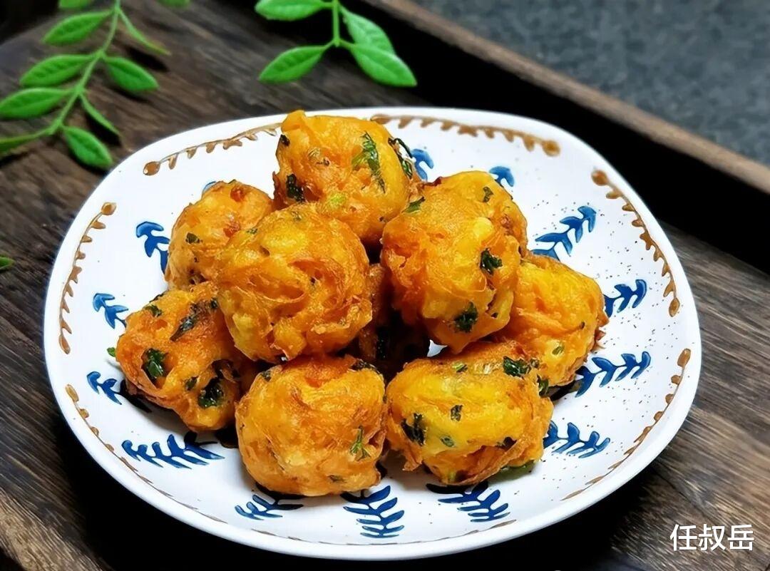 刚炸出来的水萝卜丸子,酥脆可口啊,立即就可以吃。讲究一点的吃法,可以撒上点儿椒盐调味等。