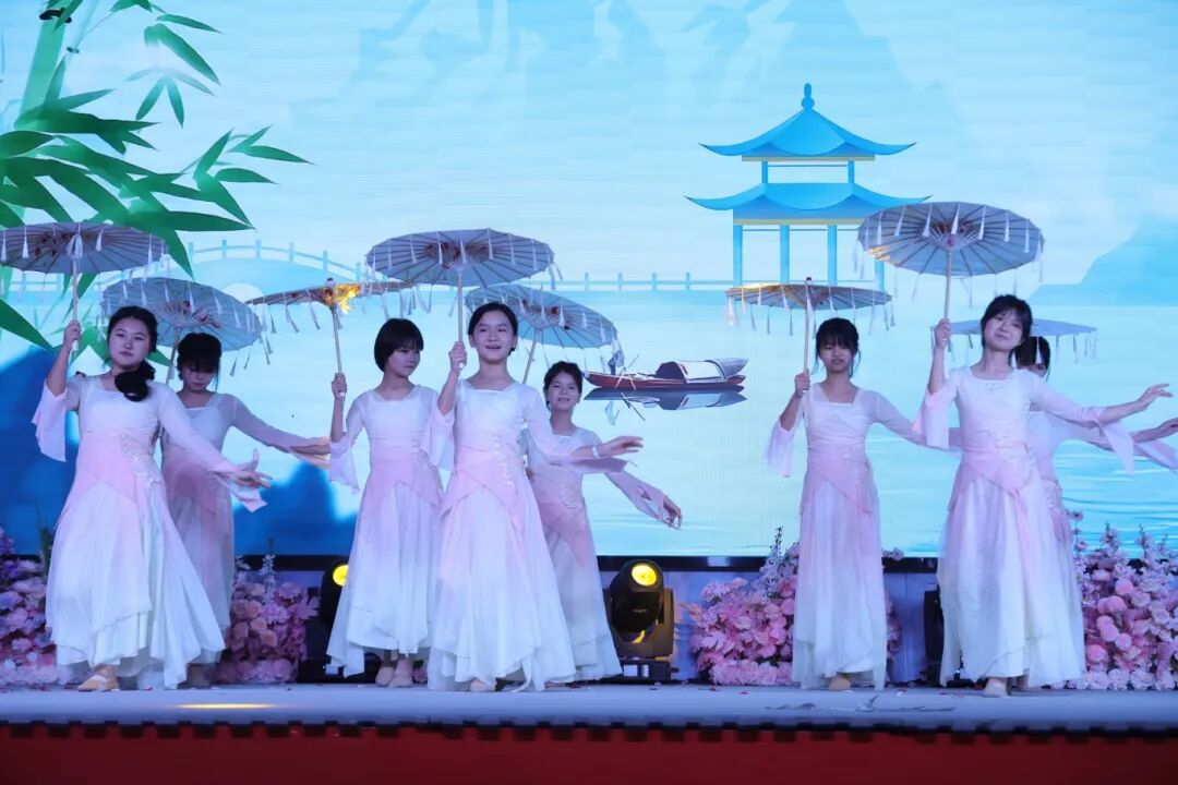 小演员们身着粉裙,舞姿俏皮,一举一动尽显女孩独有的温婉灵秀。她们身姿灵动曼妙,似风中娇花轻颤。随着音乐流淌,舞蹈如诗般展开春日画卷。台下观众沉浸其中,脸上浮现欣慰笑容,似默默为学妹们加油鼓劲。