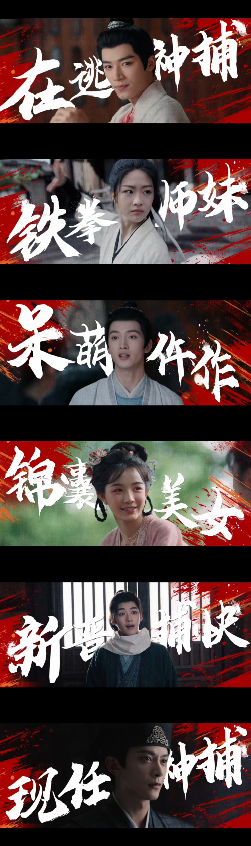 而波波队其他成员,向涵之饰演的捕王之女钟雪漫,虽然身为女子,但是武力值杠杠滴,出招快狠准,面对凶徒直接化身“战力天花板”;陈宥维饰演的风清浊,看似呆萌,实则是扛把子仵作,一个伸手就是和shi体“亲密接触”;张南饰演的霍府大小姐霍黛蓉,甜妹的外表下心思却异常缜密,通过智谋玩转人心;何洛洛饰演的童双,作为新晋捕快,眼神透露着大学生的“清澈”,但查案时怪招频出看呆老手;邓凯饰演的诸葛孔云,言语上高傲冷漠,实则妥妥的“团欺”被各种整蛊。这六个人组成的波波队,就像一把没开刃的刀,每个人都带着刺,却偏要往最黑的地方扎,让人期待值拉满!