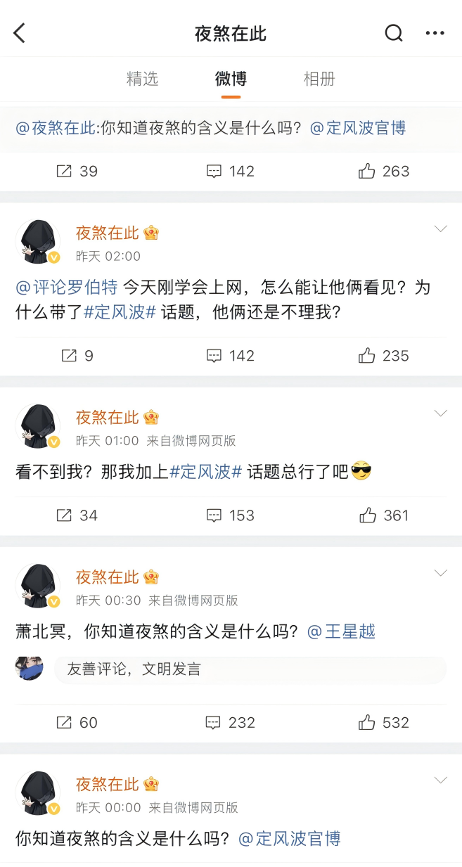 前几天《定风波》还开通了一个微博角色号,一开通就整起了花活儿,半夜出没,连续骚扰男主王星越和官微,活人感拉满!