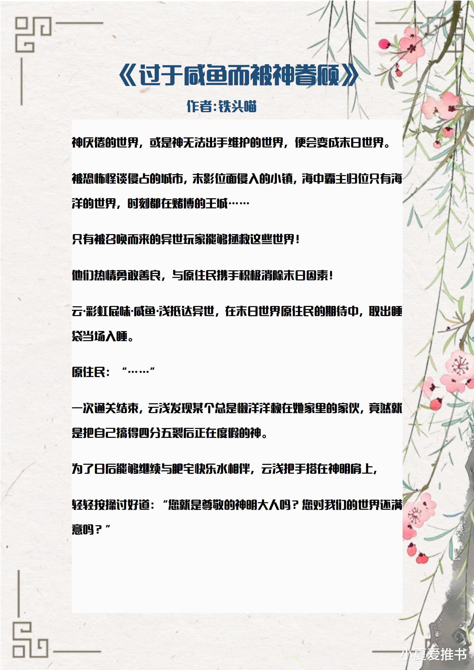 咳咳,我是这样觉得的,如果宝贝们,觉得无聊就想看看无限流的文,这边还是可以入的,毕竟设定还是有创意的,是真的不错的。然后逻辑性也还是有的。