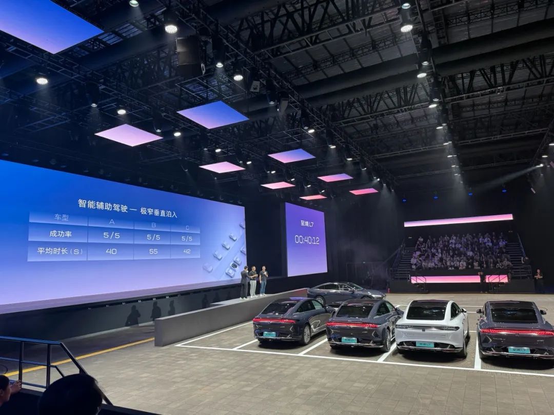 发布会现场,别克还给至境L7安排了一个现场实测辅助泊车的环节,虽然都知道有剧本,也已经有其他车企玩过了,但依然是个创新。
