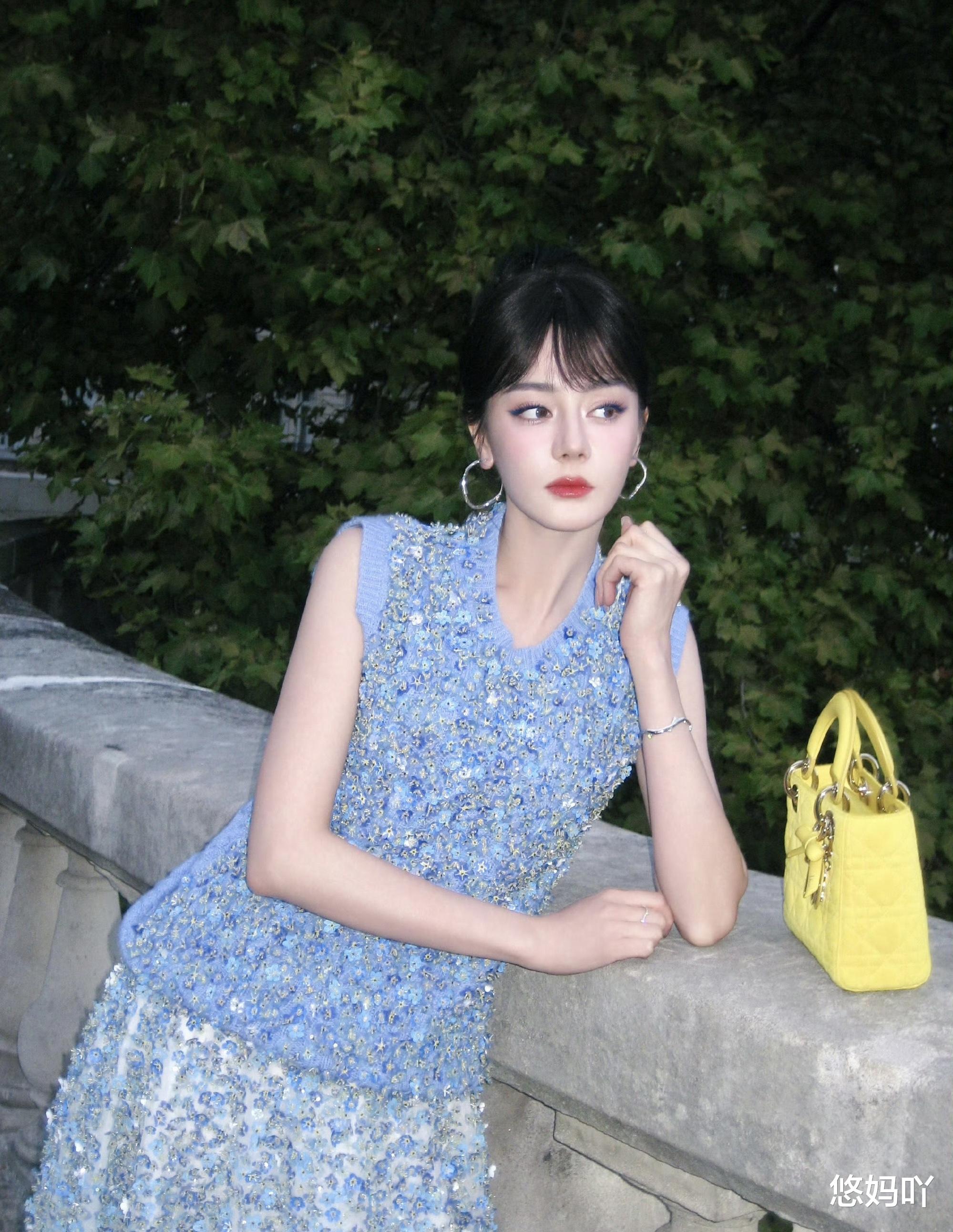说实话,之前网上对她的刘海还有些争议,说什么“遮额头显脸短”“不如之前大气”。拜托,那些说刘海不好看的人,眼睛是不是该去洗洗了?这次的造型恰恰证明了,迪丽热巴的团队和她本人对时尚的拿捏已经到了“人衣合一”的境界。那缕轻盈的刘海非但没有压气质,反而柔化了她原本偏立体的五官轮廓,让那份与生俱来的疏离高级感,瞬间多了几分亲和力与少女的灵动。她站在那里,不是高高在上的神女,而是你身边那个又美又飒、自信发光的闺蜜,让人忍不住想靠近,却又怕惊扰了这份美好。