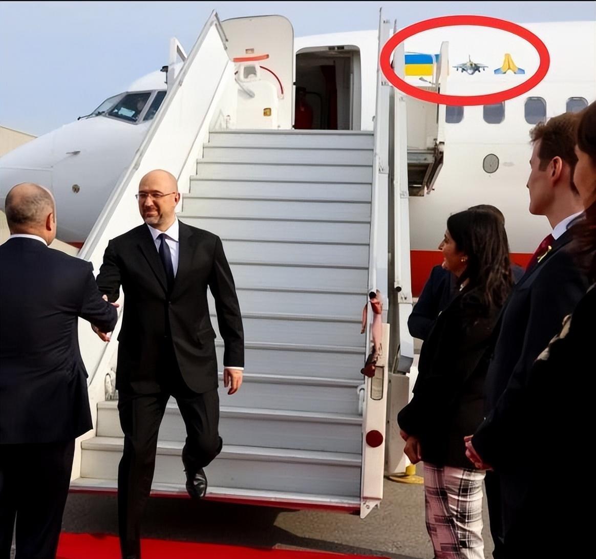 【乌总理什梅加尔最近外访,飞机上贴有“请求向乌克兰提供战斗机”的表情包】