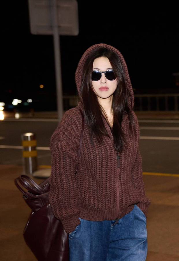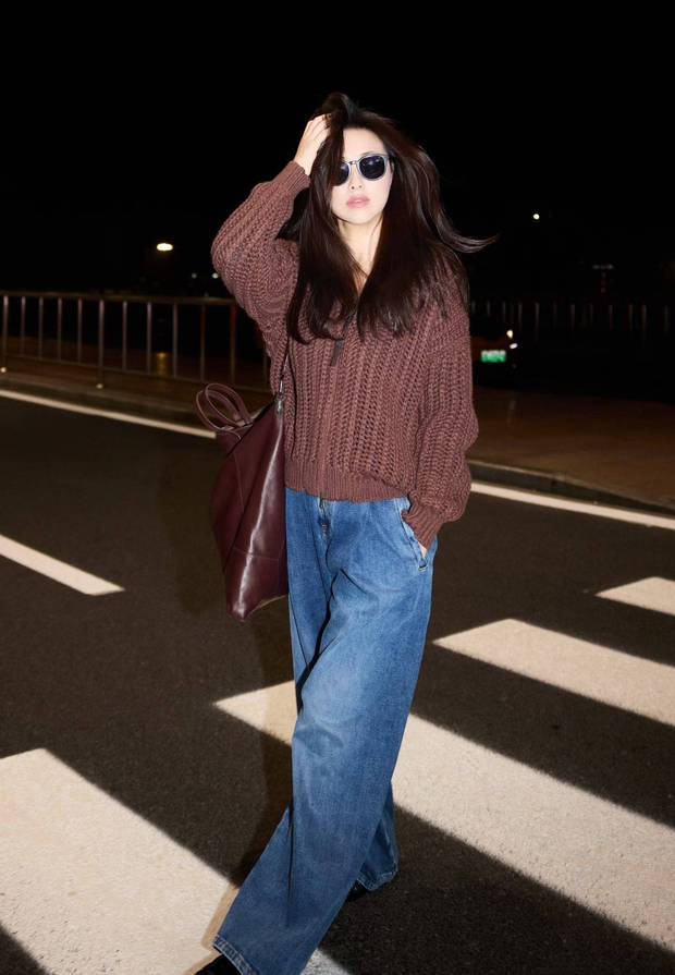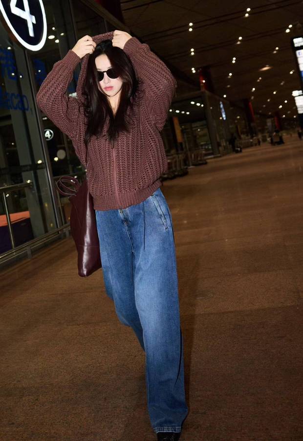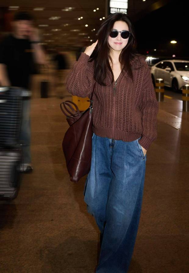 近日,朱珠米兰时装周机场出发图释出。图中,朱珠身着红棕色外套搭配牛仔裤,随性时尚。
