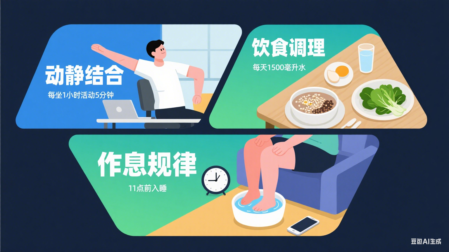 1、动静结合 是基础。每坐 1 小时起身活动 5 分钟,伸伸懒腰、踮踮脚尖,让血液重新 “流动” 起来。每周再抽 3 次时间做有氧运动,比如快走、游泳,每次 30 分钟,能增强心肺功能,给血管 “减负”。