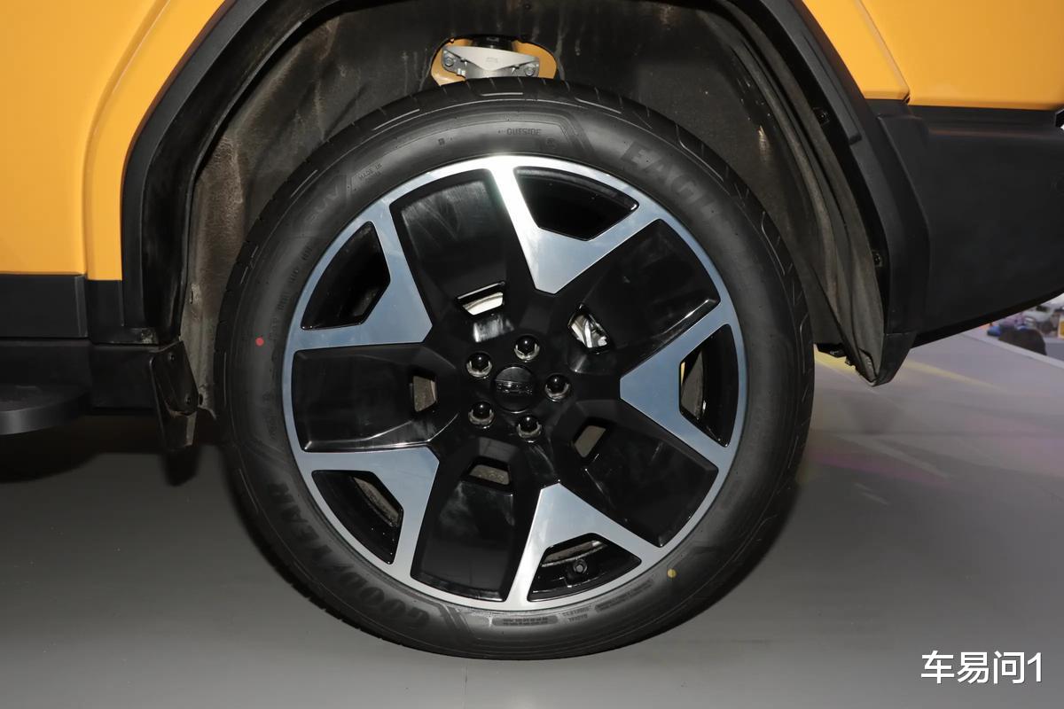 当然啦,既然有“硬派”二字,那应有的装饰套件与功能配件还是必不可少的。在套件上,前后保险杠均能够看到宽大的护板与防撞结构,尽管它们带来的倾斜角度、立体宽度都不如传统越野车,可确实能够为通过性带来直接优化。在配件上,车辆车头带有独立转向灯,并采用了大尺寸后视镜结构,而在车尾也带有全尺寸外挂备胎、后保险杠拖挂钩等等,应该说多用途方面还是做得比较好的。