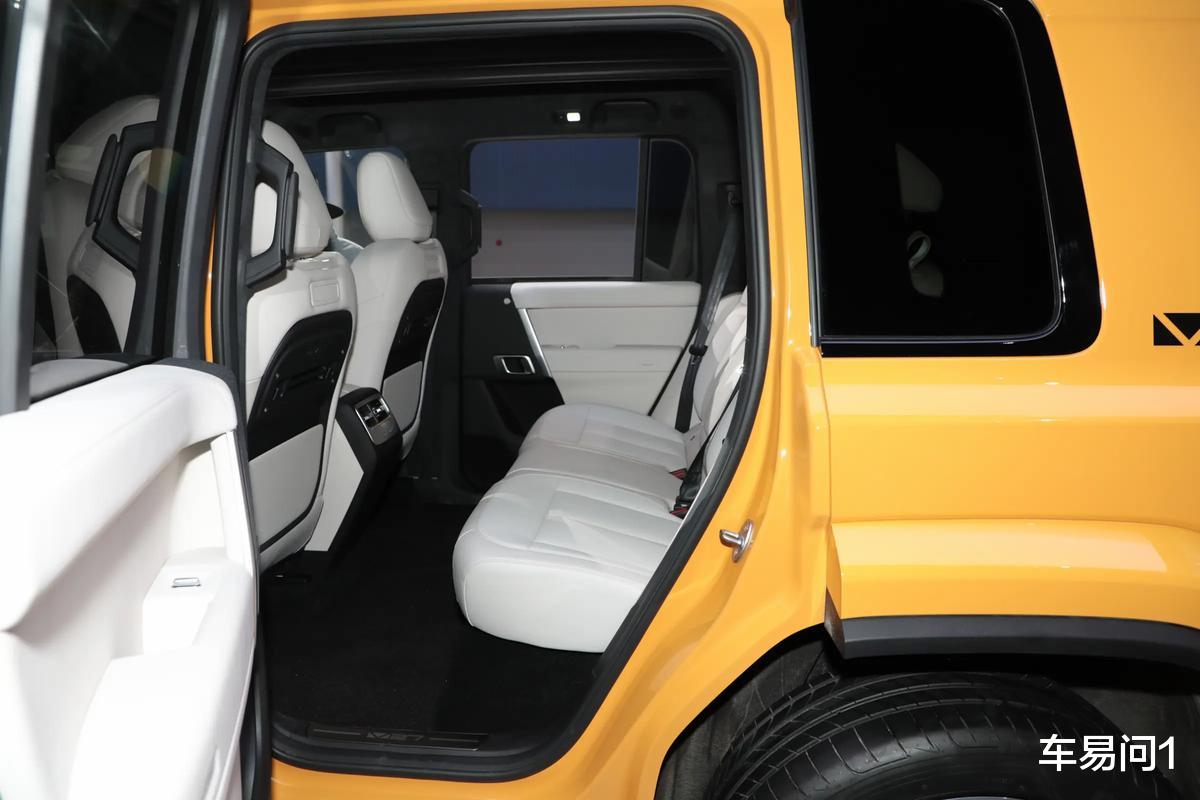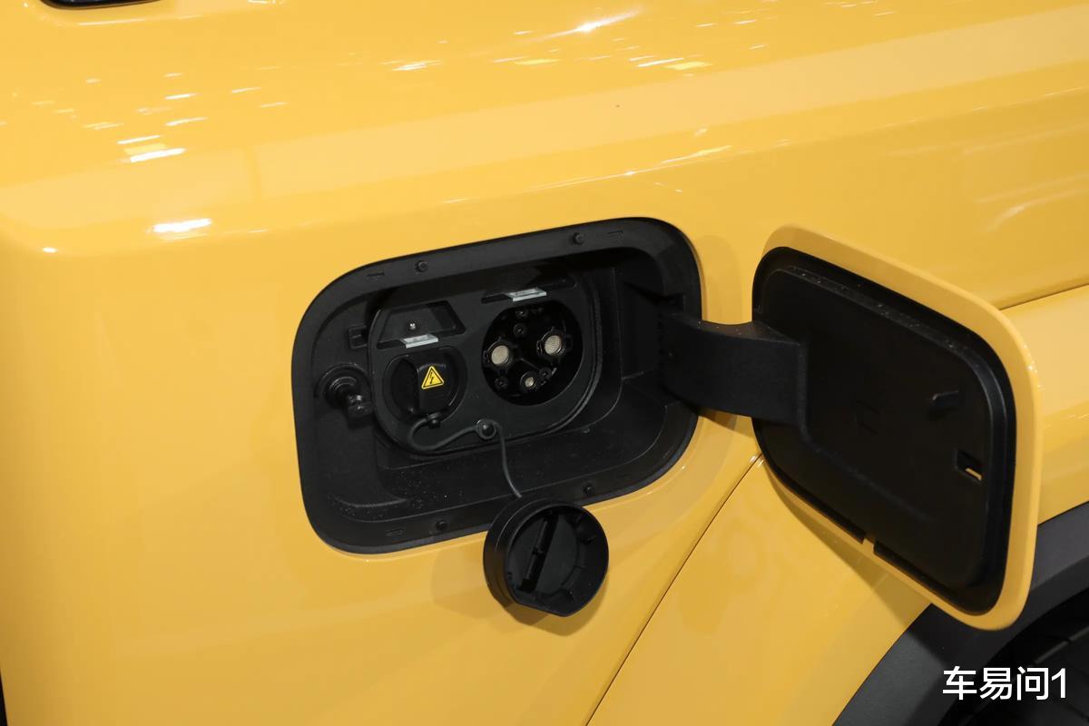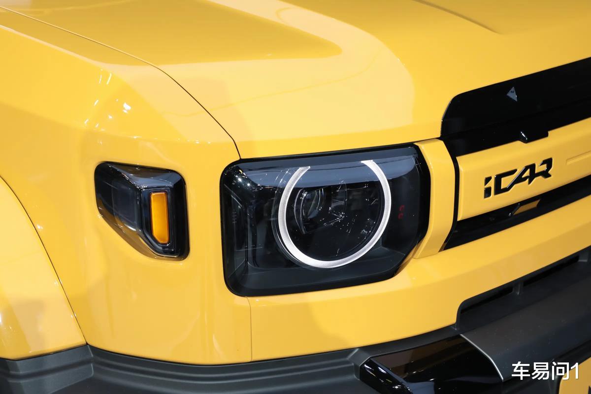 iCAR V27主打的是家庭用户,而不是所谓的发烧友,这使得车辆在视觉方面有更倾向于前卫的表达,而没有完全偏向到硬朗方向中。在方盒子结构下,车辆不光有复古效果的圆形大灯、有成对出现的熏黑乐高式尾灯,还扩大了边角与边框结构中的弧度。这些处置使得车辆既没有坦克400那么锋利,也没有像钛7那样完全城市化,算是兼顾到了不少年轻家庭用户所想要的时髦效果。