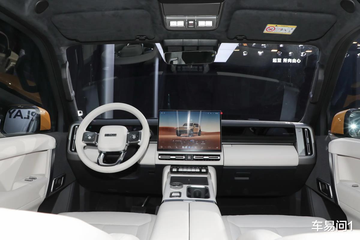 进入到驾驶舱,iCAR V27其实也有不少比较硬朗的设计,比如纵置包边的出风口、比如笔直贯穿的副仪表台+扶手箱,还有十分平直的车门扶手结构区间打造等等,这些都是可以体现车辆硬派定位的。此外,车辆内部也提供了覆盖A柱等区域的抓握扶手,算是在为车辆的多路况驾驶做多手准备。