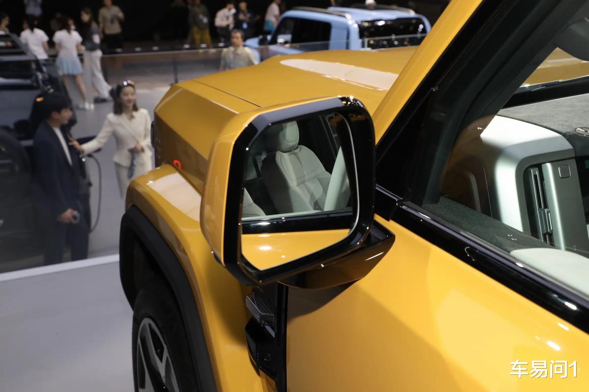 尺寸方面,iCAR V27拥有4909/1976/1855mm的长宽高与2910mm的轴距,这在中大型硬派SUV确实不算大,而备胎与行李架分别会带来+146mm、+39mm的长度与高度增加。值得一提的是,iCAR V27其实也准备了诸多车外套件可选,而包括可替换的装饰面板、集成NFC的多功能面板,还有盲窗设计等等,则是车辆比较展现家族辨识度的区域。