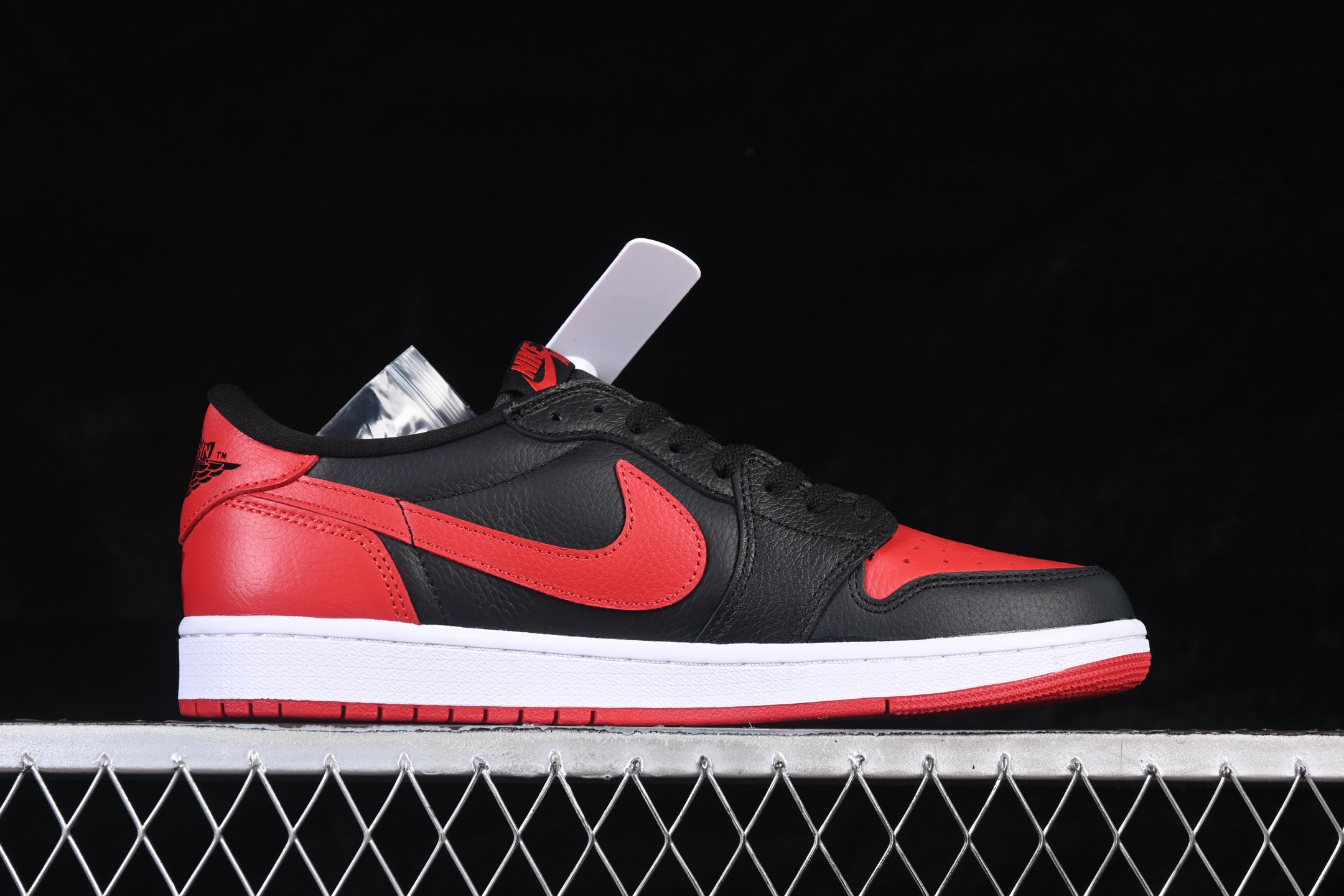 鞋身基底采用黑色荔枝纹皮革,鞋头、鞋跟及飞翼(Swoosh)标识处搭配红色覆盖层,同时配备红色鞋带与红色外底。白色中底完美中和了黑红的强烈对比,而鞋跟处的红色 “ X ” 标识,更是一秒勾起老鞋迷的情怀,妥妥的情怀与颜值兼备!