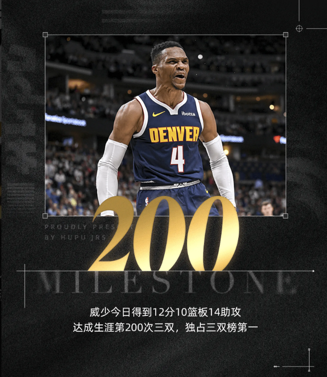 威少替补出战32分钟,全场12中5,三分4中1,得到12分10篮板14助攻2抢断1盖帽,达成生涯第200次三双。