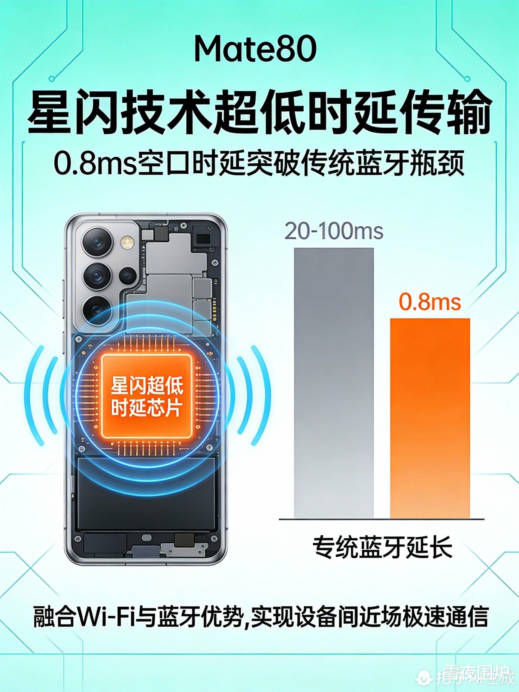 星闪超低时延传输Mate80内置星闪芯片,支持0.8ms空口时延(传统蓝牙时延约20-100ms),通过融合Wi-Fi与蓝牙优势,实现设备间近场极速通信。问界M9车机同步搭载星闪模块,形成端到端直连通道,规避网络中转延迟。