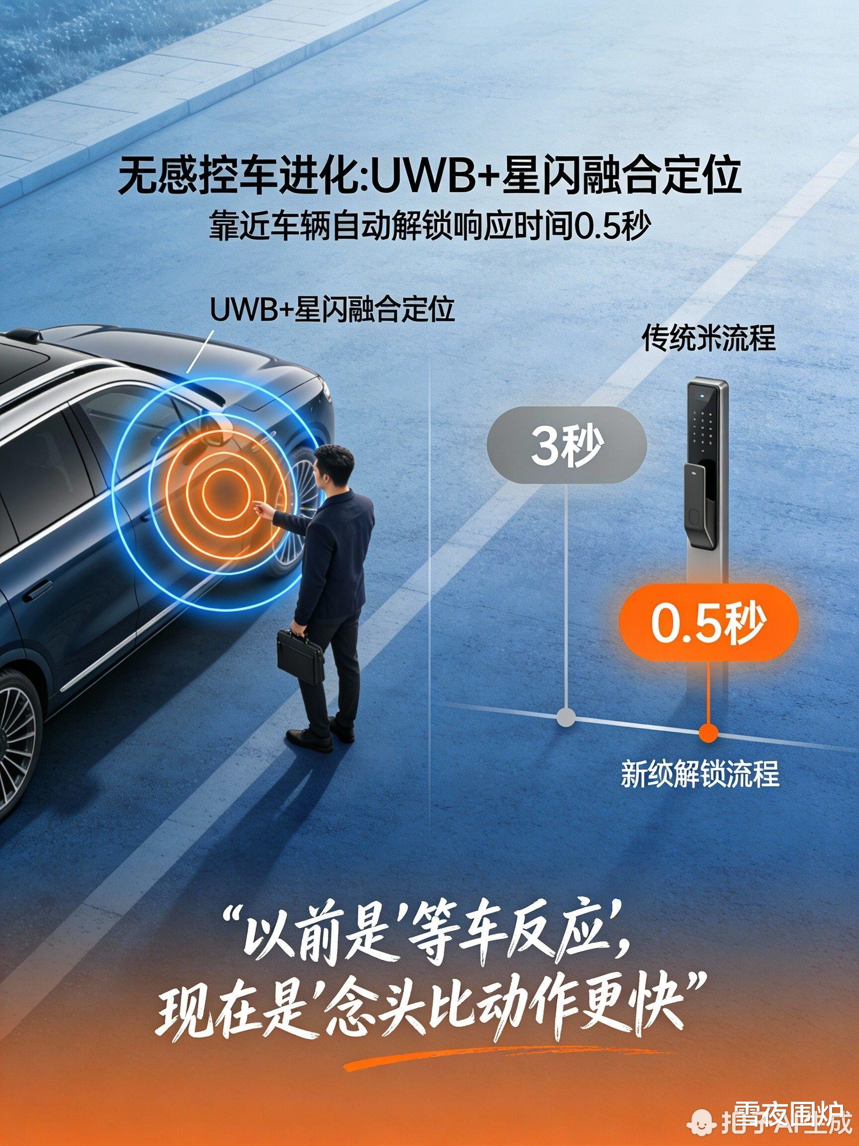 无感控车进化UWB+星闪融合定位:靠近车辆自动解锁的响应时间从3秒缩短至0.5秒。