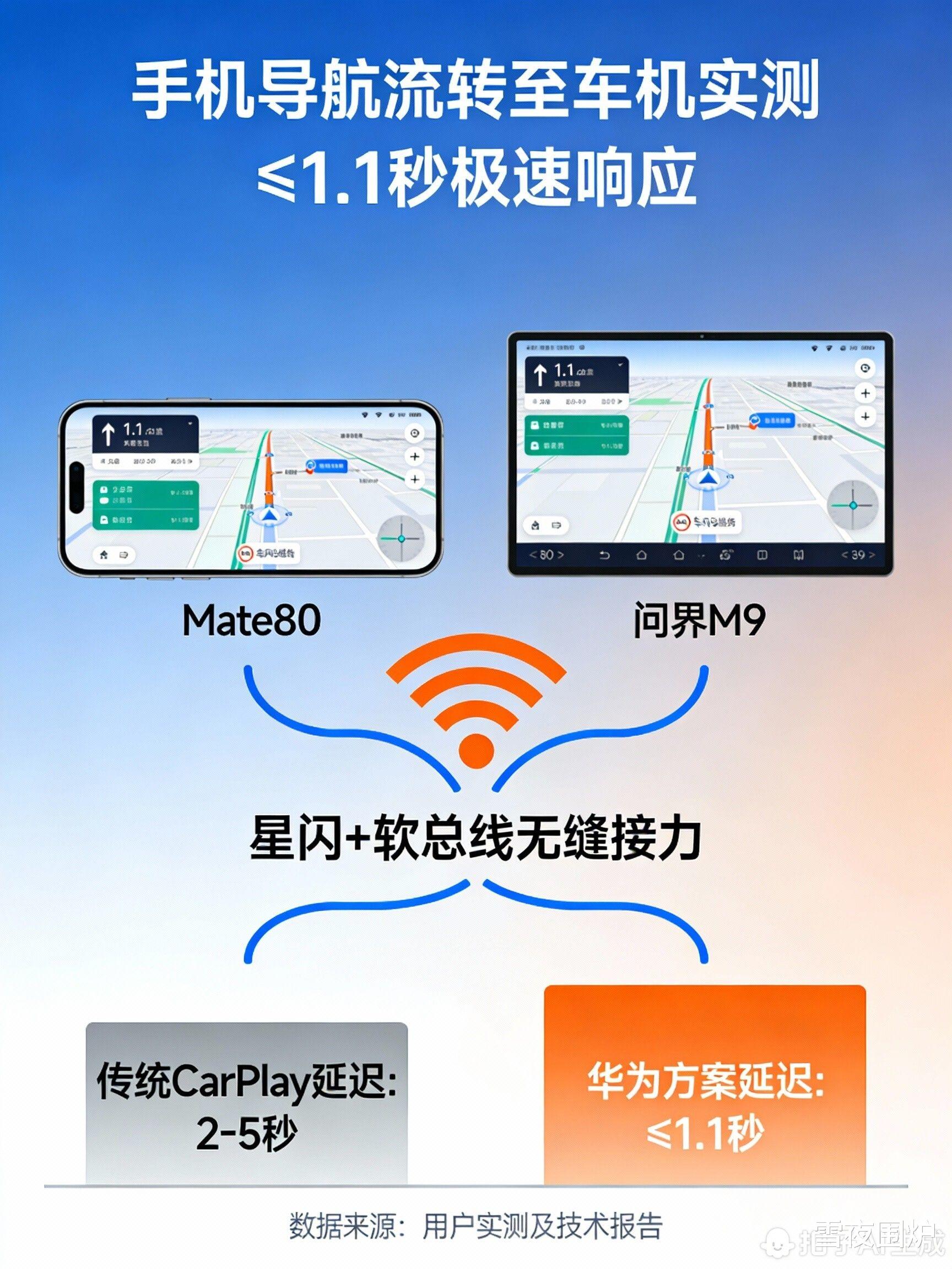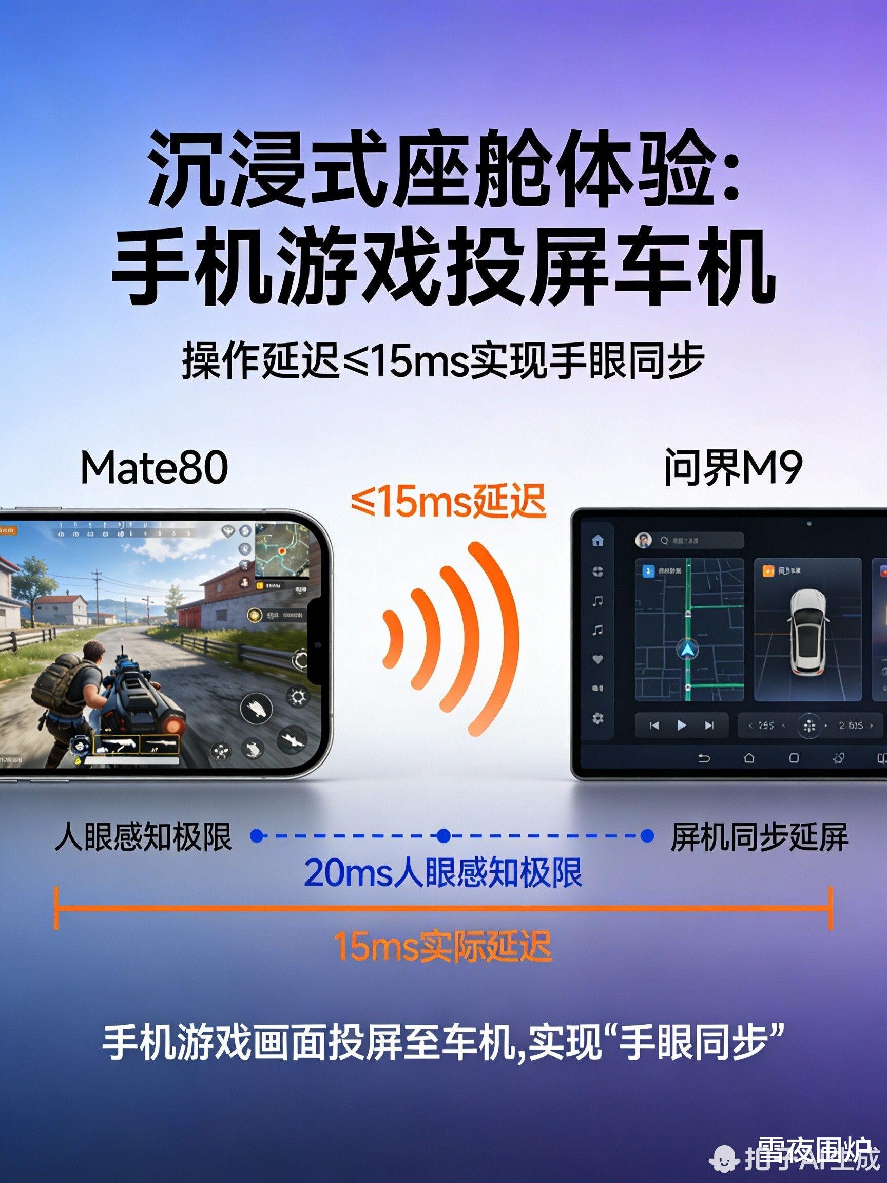 问界M9 + Mate80组合的延迟仅为行业标准的 1/10。