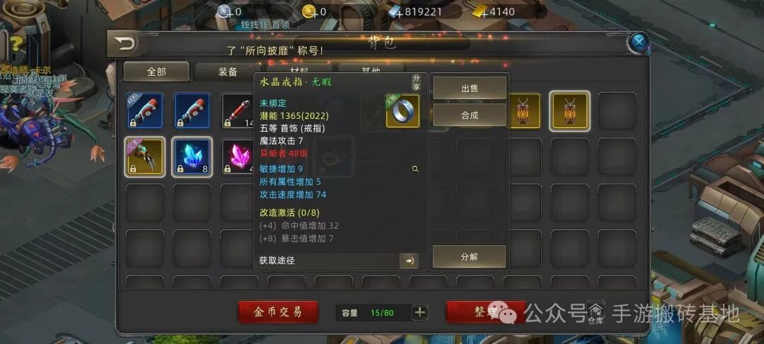 主要能搬的就是两样东西:装备图纸和各种强化材料。为啥搬这些?因为我们是来搬砖的,不是来当氪金大佬的,不可能投钱去博那种不确定的战力提升。