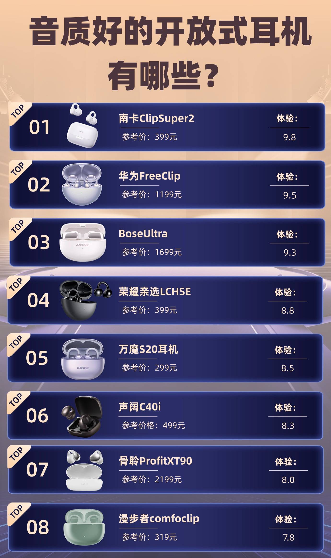 说到开放式耳机,很多人第一反应可能是“到底有哪些牌子做得靠谱?”毕竟这类耳机主打的是轻盈、舒适、透气,能不能戴着舒服、声音够不够自然,全看品牌功力。市面上的选择越来越多,从传统做音频的大厂到这两年崛起的新势力,都在出开放式款式。为了不让你一头雾水,我整理了一份开放式耳机推荐,让你用最省心的方式快速锁定靠谱的牌子,挑耳机不再踩雷。