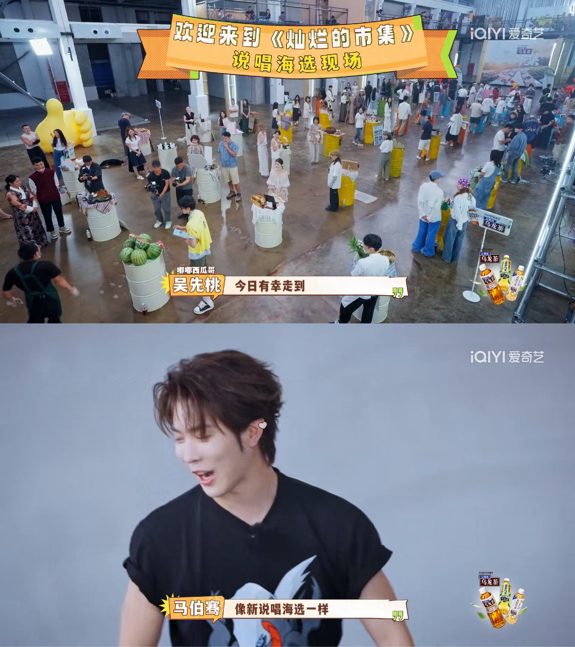 到了正式选摊主环节,54名“身怀各技”的成都站摊主的展示方式花样百出,给主理人们和屏幕前的观众都留下了深刻的印象。嘟嘟西瓜哥用边跳边唱的独特揽客方式,瞬间把大家的注意力吸引过来,就连在楼上默默观察的马伯骞都忍不住发出“这个搞得像新说唱海选一样”的感慨!
