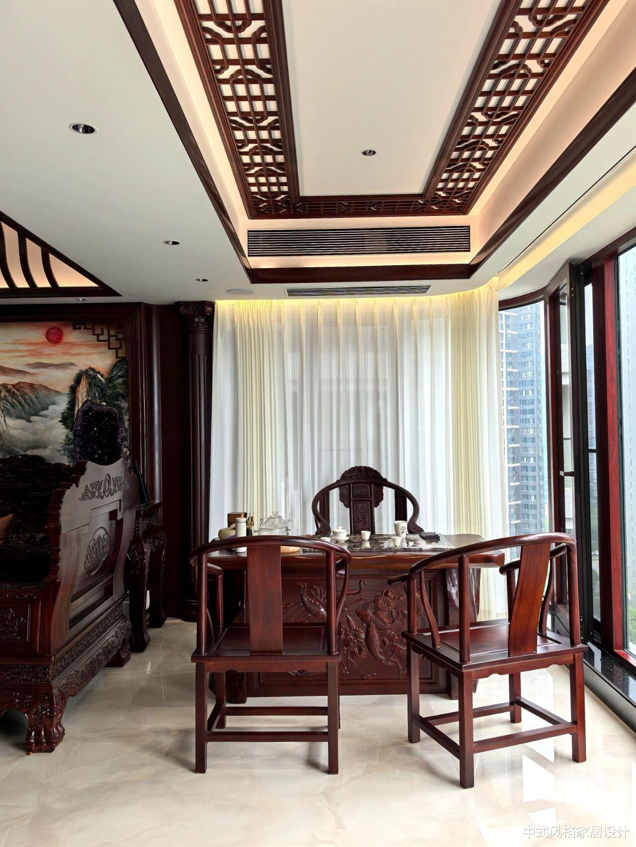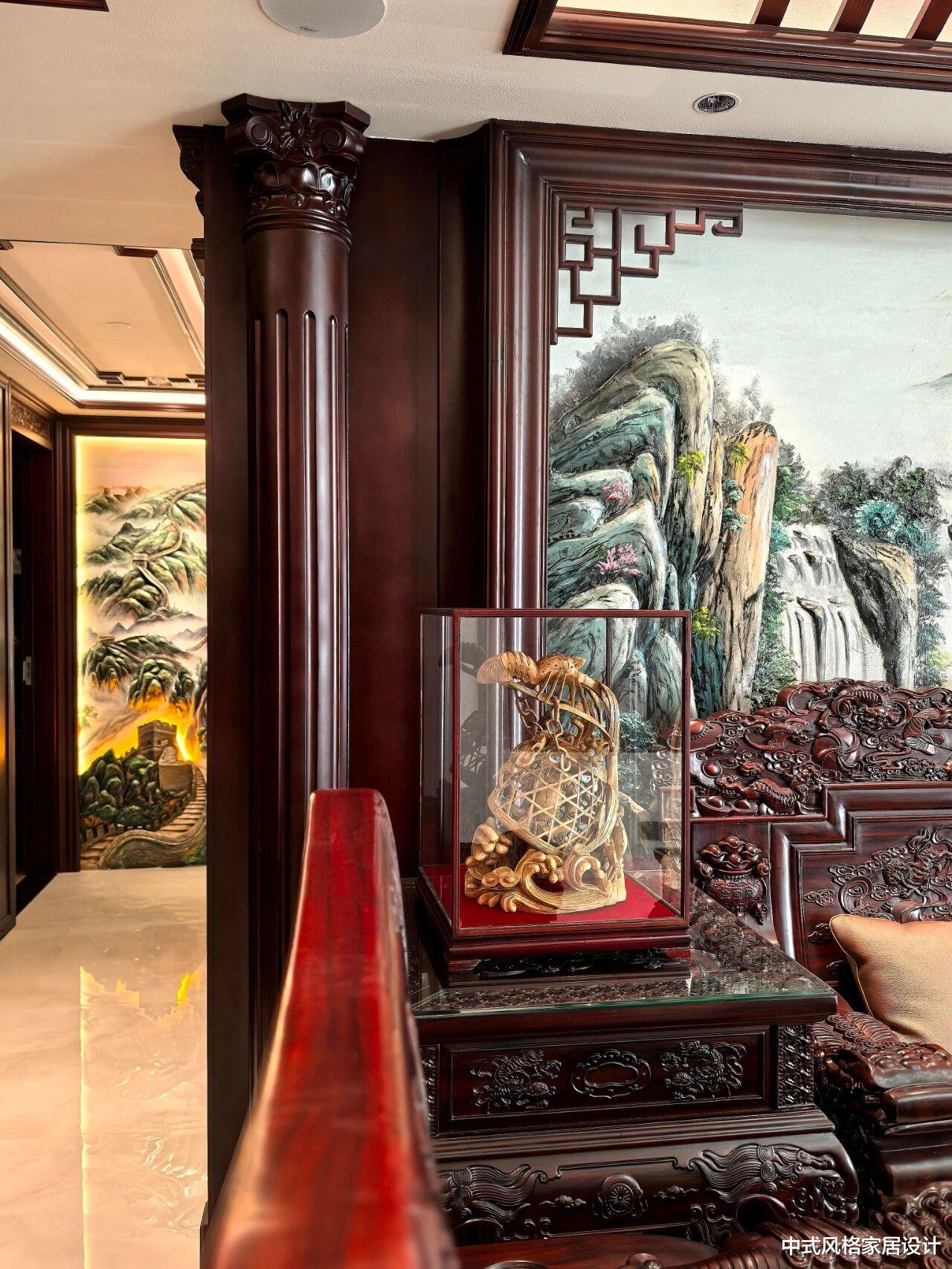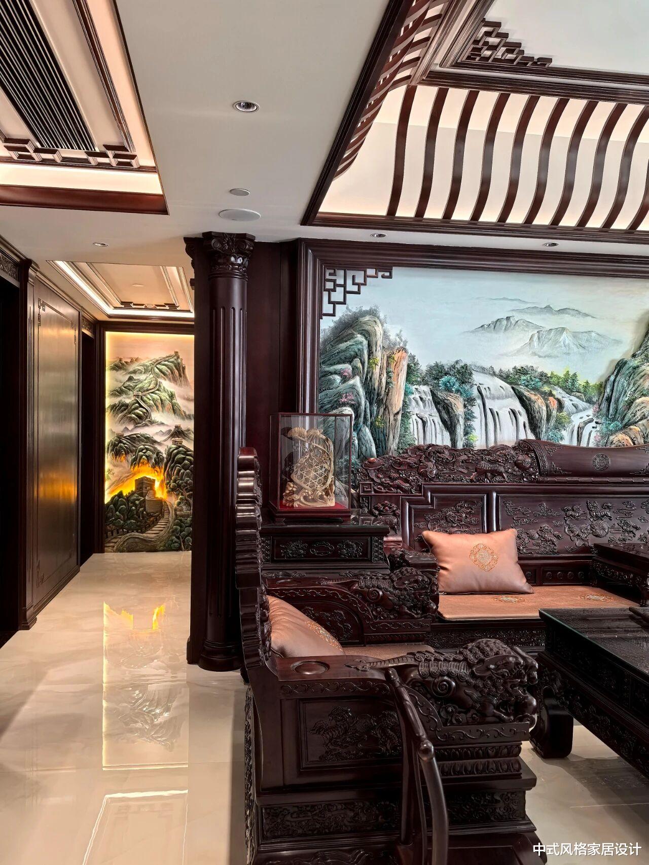 当夜幕降临,灯光亮起,墙上的山水在光影中活了过来,红木泛着温润的光泽。这个家终于成为了它该有的样子——不只是一处居所,更是一方可居可游的心灵天地。在这里,每一天都是在与美同行,每一步都是在文化中穿行。而这,或许就是老中式风格在现代生活中,最恰如其分的表达。