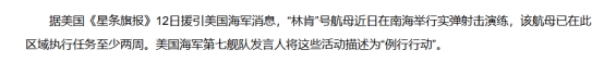 1月8日开始,林肯号航母打击群不仅一直待在南海海域,还在那里以“方阵快砲”进行了极为高调的实弹射击演练,舰载机F-35C频繁起降,至少2周的“例行行动”,却实打实地演练了海上封锁和反介入作战的科目。