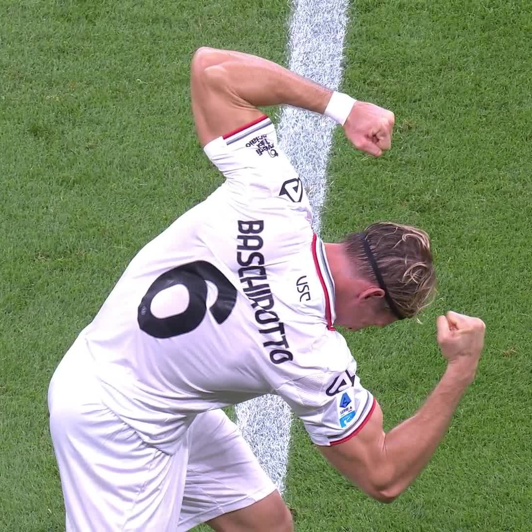 克雷莫纳后卫巴希罗托进球后秀出健硕的肌肉。本场克雷莫纳祭出的绞肉战术极为成功,让米兰一众中场无力对抗。