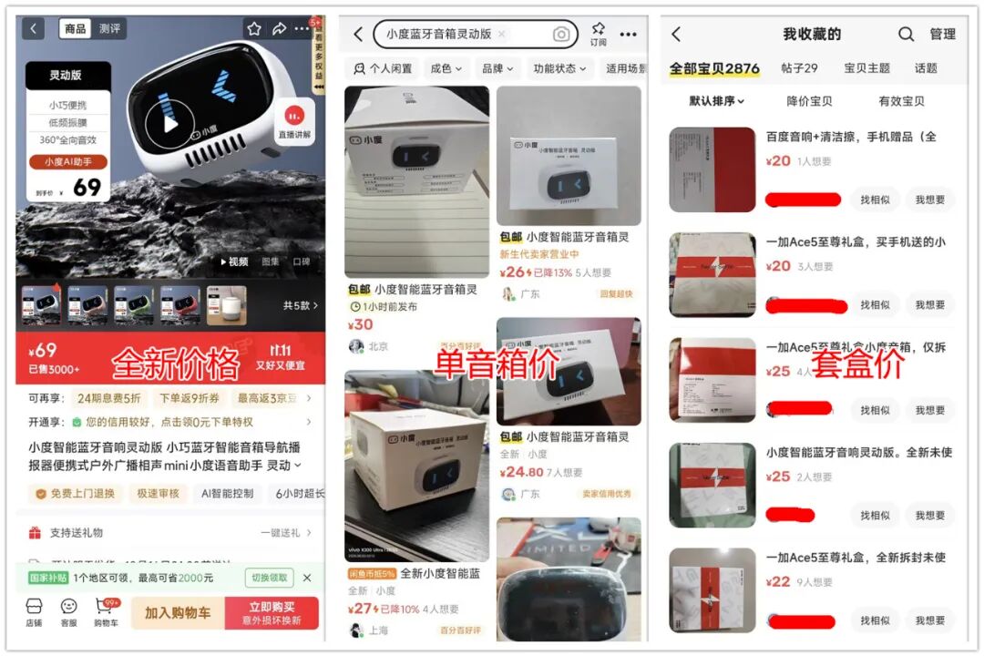 最后是价格,这个小度音箱灵动版全新卖69块,闲鱼二手的均价是25-30元,但一加Ace5至尊礼盒最低才卖20元,很多都是全新未拆封的礼品,人家买手机赠送不需要,挂闲鱼回血。