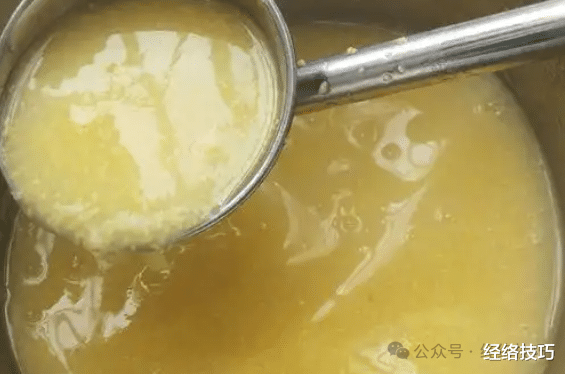 加了碱的粥,其颜色是深黄的,甚至有些发暗,这与自家熬制的那种柔和金黄不同。