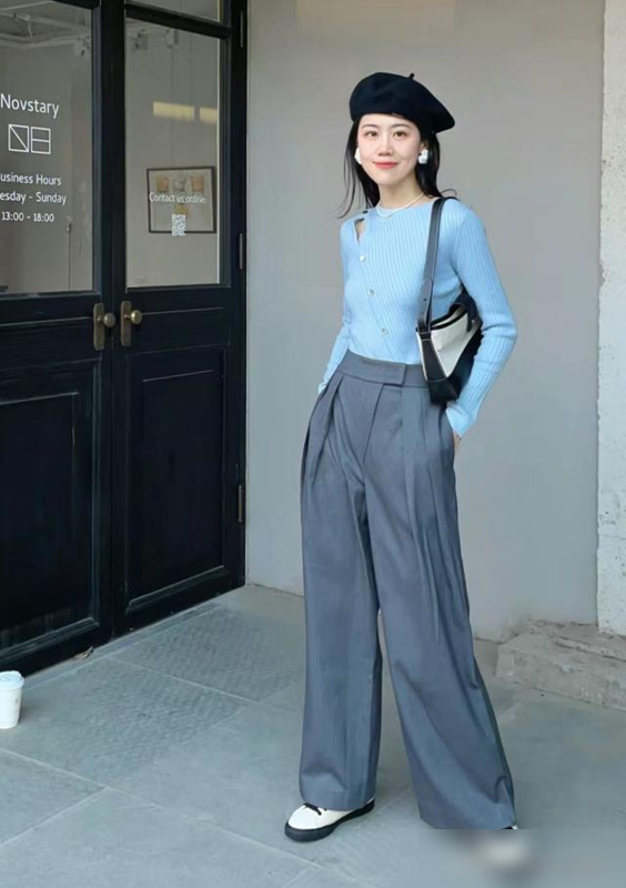就像网友@阿雨说的:“以前穿阔腿裤,总担心走路带风会不会露袜子;现在穿压褶西装裤,弯腰捡东西都不怕卡裆——美,本来就该是舒服的。” 2025年的春季裤,或许不只是一条裤子,更是女性对“自我需求”的一次大声宣告:美可以时髦,更可以自在。