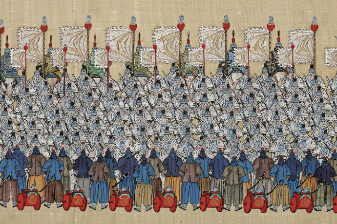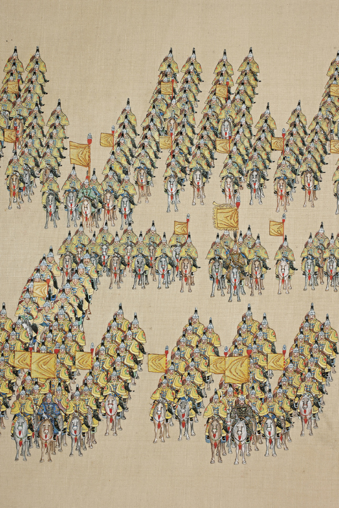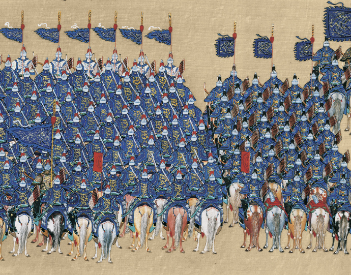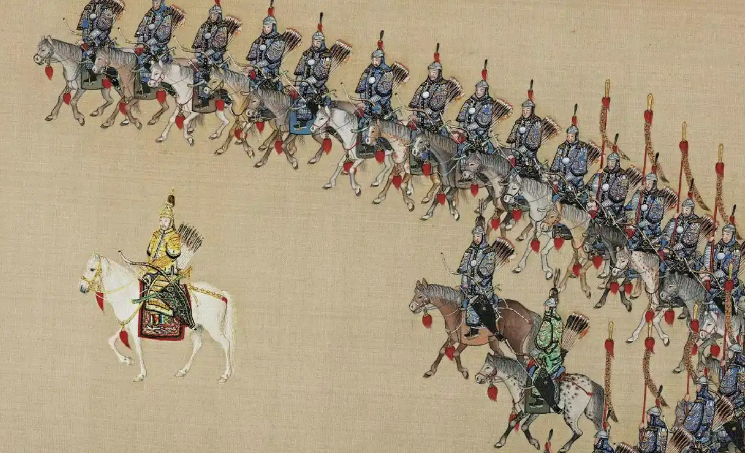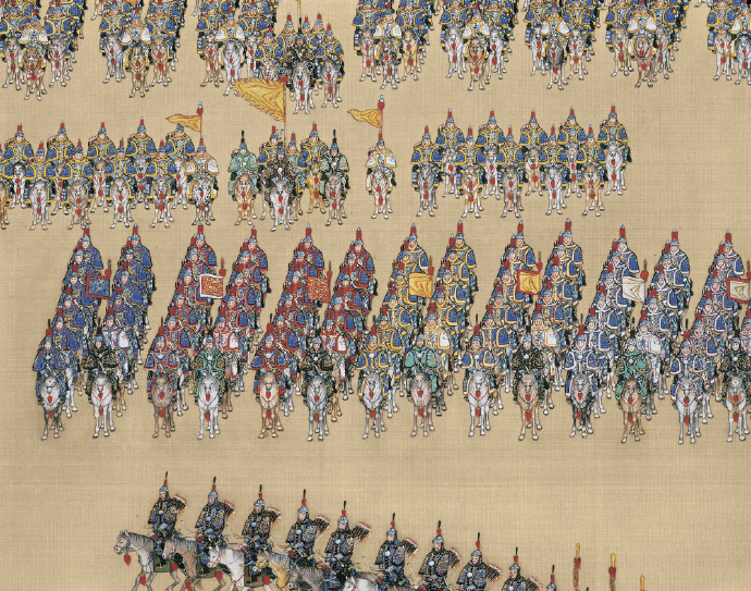 1739年,28岁的乾隆皇帝在南苑检阅军队。金昆、郎世宁等十多名宫廷画师为此联合创作了大名鼎鼎的《乾隆大阅图》。